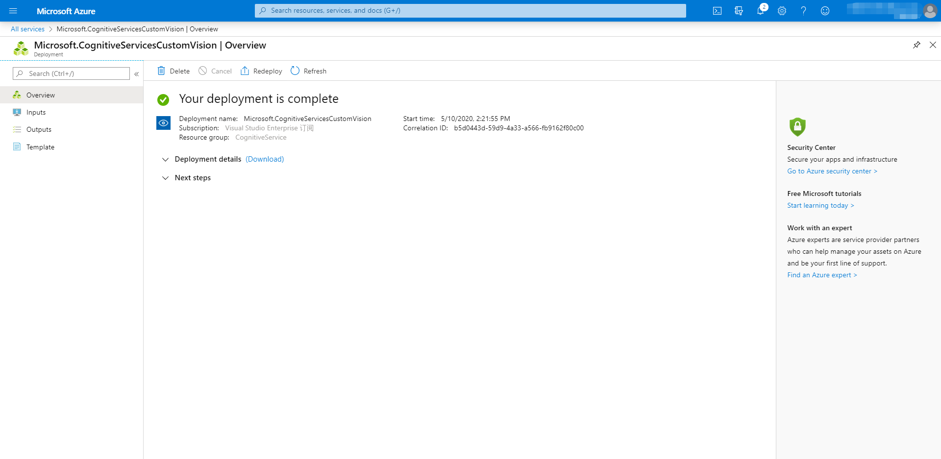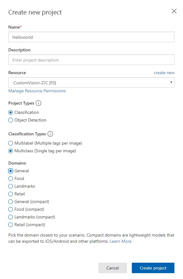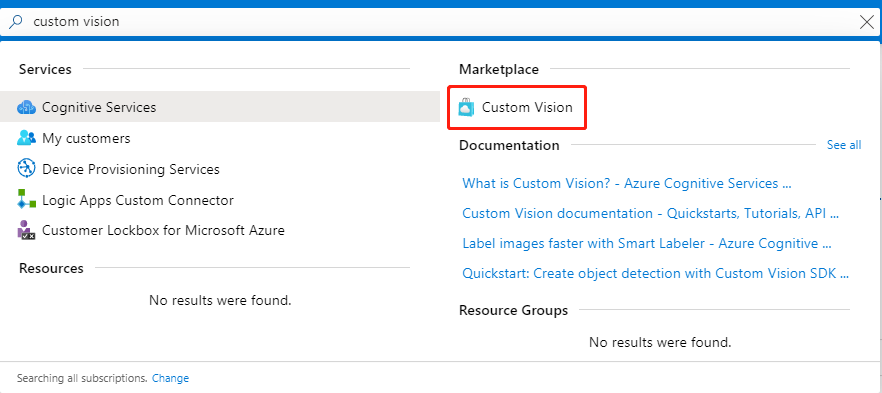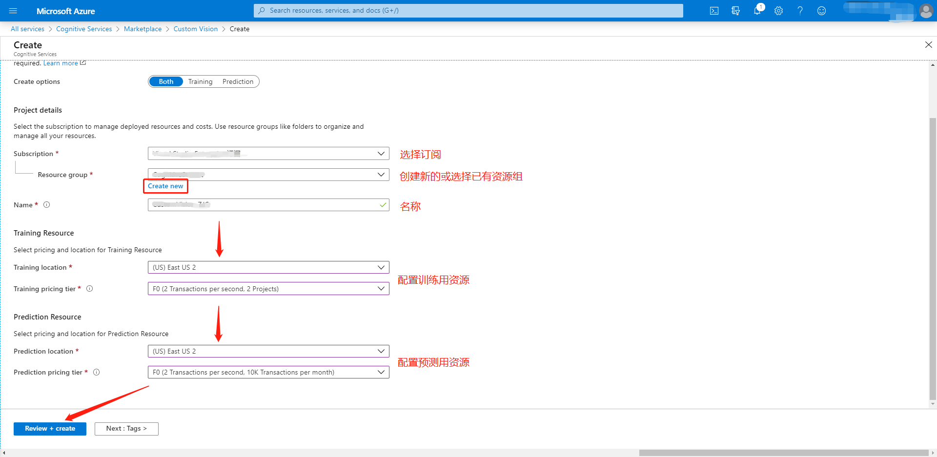 custom vision,找到并点击即可进入资源创建界面(传送门)