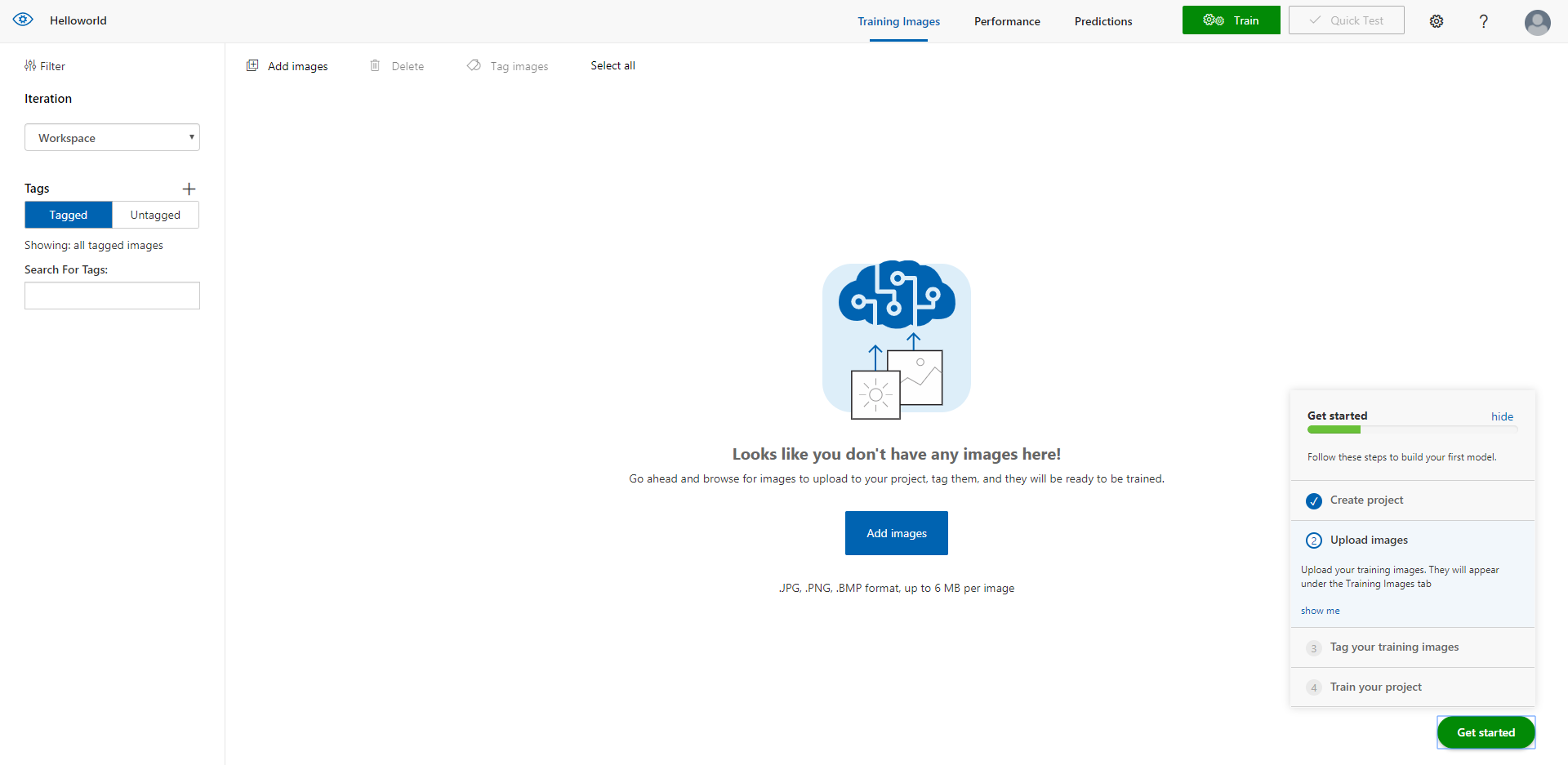 Quickstarts:https://docs.microsoft.com/en-us/azure/cognitive-services/custom-vision-service/getting-started-build-a-classifier