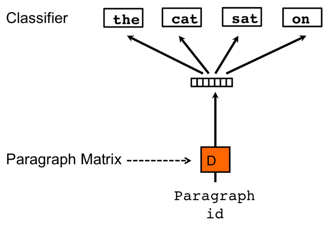 输入当前句子的 Paragraph vector,让它去预测句子中随机一个词。