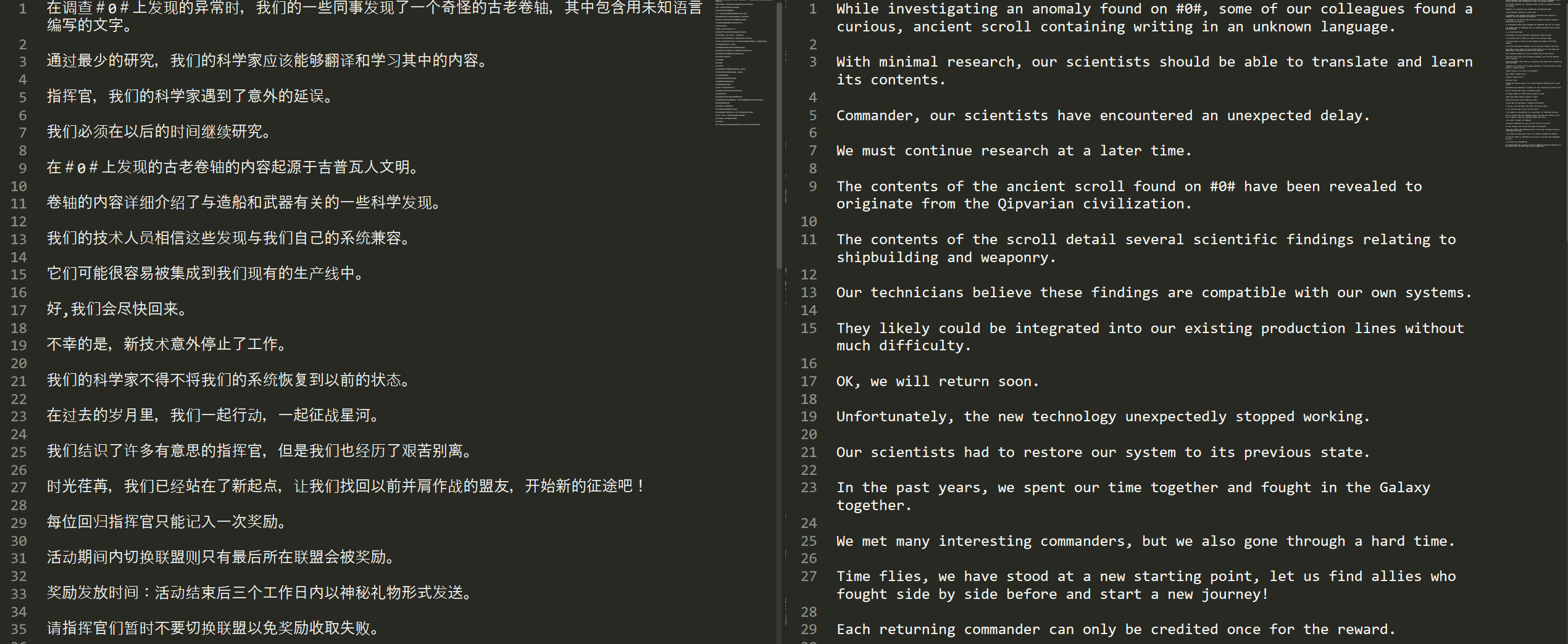 本地准备的双语样本分别放在两个文本文件中,如下图所示: